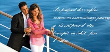 La plupart des jeunes couples vivent en concubinage parce qu' ils ont peur d' etre déçus, peur d'etre un jour trompés.