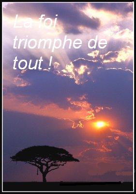 " ... Par la foi vainquirent des royaumes exercèrent la justice, obtinrent des promesses,fermèrent la gueule des l ions, éteignirent la puissance du feu, échappèrent au tranchant de l 'épée guérirent de leurs maladies.