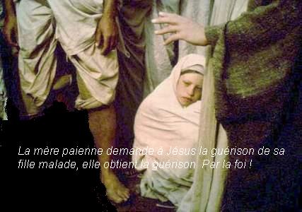 * La mère paienne qui dérange Jésus et ses disciples qui se reposent pour obtenir la délivrance de sa fille. Elle ne s'est pas fachée, elle a persévéré, elle l'a voulue et la eue , reçu .