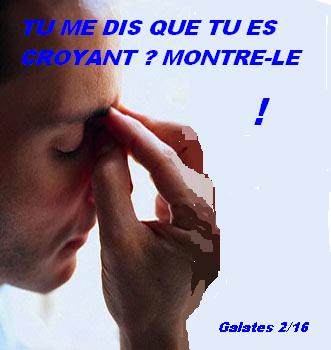 L'homme n'est pas justifié sur la base des oeuvres de loi, ni autrement que par la foi en Jésus-Christ. Galates 2/16