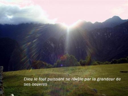 Mais el Dieu tout puissant qui se révèle ainsi par la grandeur de ses oeuvres, nous parle aussi de bien d'autres manières. Par sa Parole, la Bible, il nous fait connaitre ses propres pensées et ses plans éternels. par son fils, venu du ciel