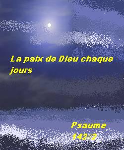 "Chantez à l'Eternel, bénissez son nom annoncez de jour en jour son salut (Psaume96/2).