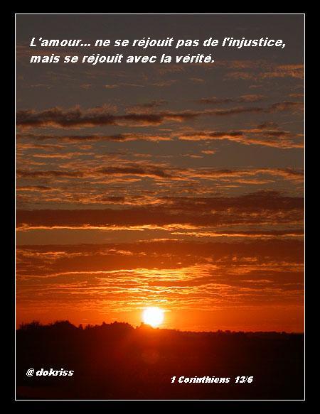 L'amour... ne se réjouit pas de l'injustice, mais se réjouit avec la vérité.